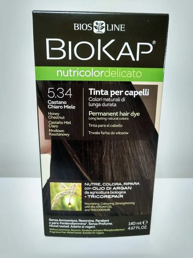 Delicato 5.34 Castaño Miel Claro es una coloración capilar permanente sin amoníaco, formulada con ingredientes naturales que respetan la fibra capilar. Gracias a su contenido en aceite de argán, queratina y extractos vegetales, proporciona un color intenso, duradero y con brillo natural, a la vez que cuida y nutre el cabello.